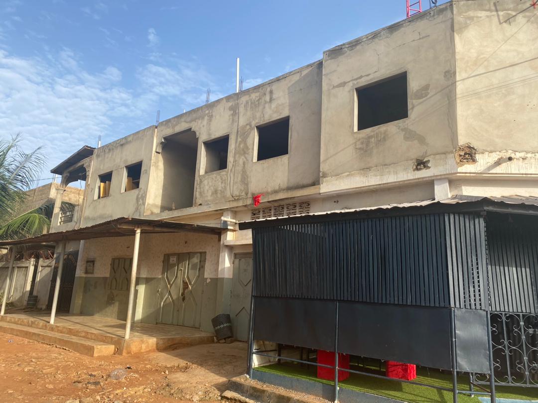 MAISON À VENDRE ( *En finition* ) *DOSSIER DIRECT + AA* il est mis en vente, une maison bien placée en angle rue au bord d'une rue de 16 et 14 m (Reste que la finition) avec la composition suivante: _*Au Rez* : 03 boutiques opérationnelles, 02 pièces WC douche, et un garage _*Au R+1:* Au total 05 chambres, 01 Salon et une terrasse. *Lieu* Lohgo gomé, non loin du carrefour AÏSED *Prix* 26 millions discutable *Surface* Quart de lot (1a50ca) *Documents* 03 Tampons *_MYKEYS LA RÉFÉRENCE POUR TROUVER LA VOTRE_*